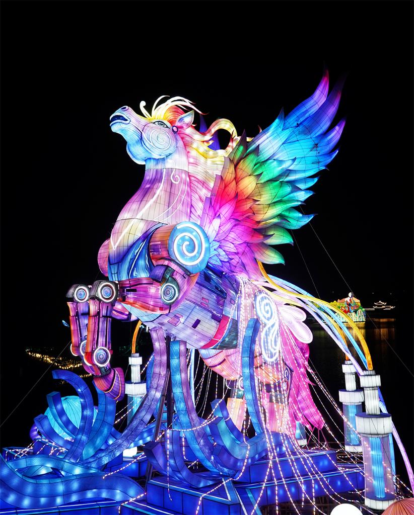 马年专属打造的《马言马语》灯组俏皮可爱,展现了川渝地域文化特色。彭博摄