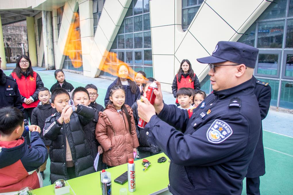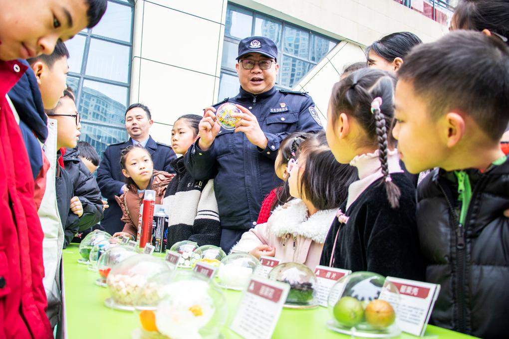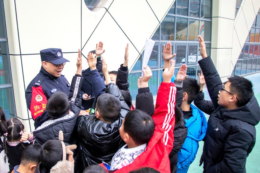 “小朋友们,乘坐火车可以携带烟花爆竹吗?答对了,就可以加入游戏了!”学生们踊跃举手,争相回答,答对的学生兴高采烈地跳入格子中,单脚跳跃、切换步伐,在游戏中体验快乐;暂时答错的学生则认真聆听民警的详细讲解,牢记知识点后再次挑战,学生们的欢声笑语此起彼伏。“坐高铁,不要带鞭炮哈!”完成游戏的三年级学生小龙(化名)拿着民警发放的小奖品,兴奋地和同伴分享收获。
