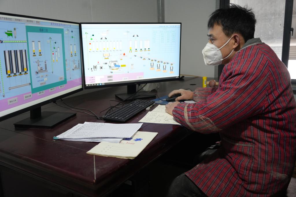 顺着他手指的方向,记者看到监控画面中鸡舍层叠有序,自动饲喂线运转流畅,将营养餐准时送达,清洁水源潺潺流淌,一派生机。