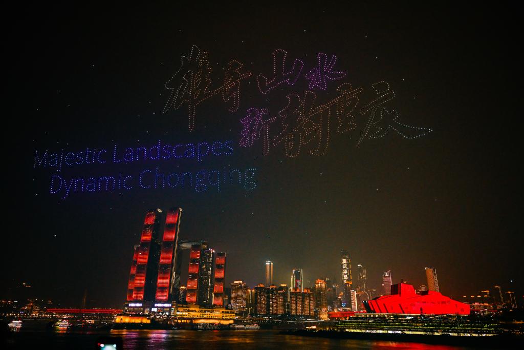 大年初一,“新韵重庆”无人机灯光秀在重庆夜空上演。无人机灯光队列组成各种创意图案,点亮夜空,为观众献上视觉盛宴。