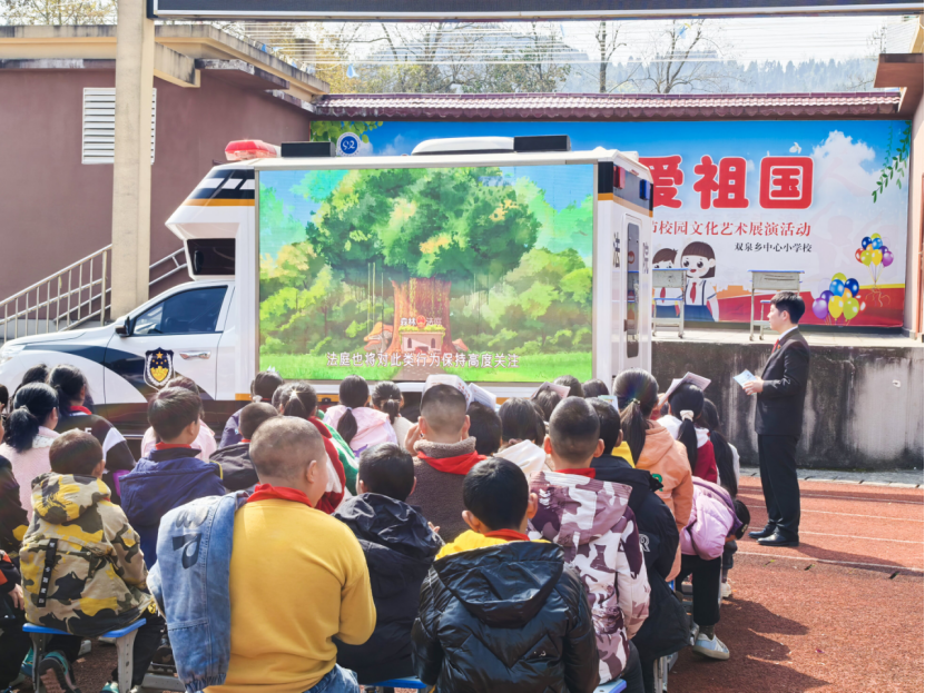 3月13日,重庆市酉阳县人民法院创新普法形式,将“5G车载便民法庭”开进双泉乡中心小学,以“《中华人民共和国生态环境法典》宣传”为主题,为乡村学生带来一堂沉浸式法治教育课,推动生态保护理念与法治意识从孩童扎根。