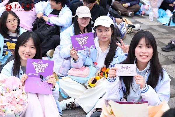 随后,学生们重温高三伊始写下的“初心卡”,并现场书写“骐骥卡”,在回望与展望中感悟成长的真谛。家长与任课教师共同参与“托举”环节,寓意家校合力为青春护航。“感恩”时刻,学生们拥抱身边最想感谢的人,场面真挚动人。