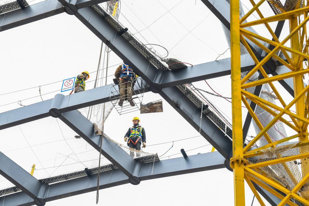 3月20日,工人在成渝中线高铁铜梁站建设现场施工作业。新华社记者 唐奕 摄