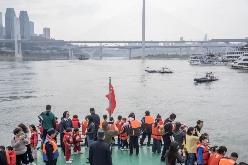 重庆公安码头迎来“小记者”。重庆市公安局水上分局供图
