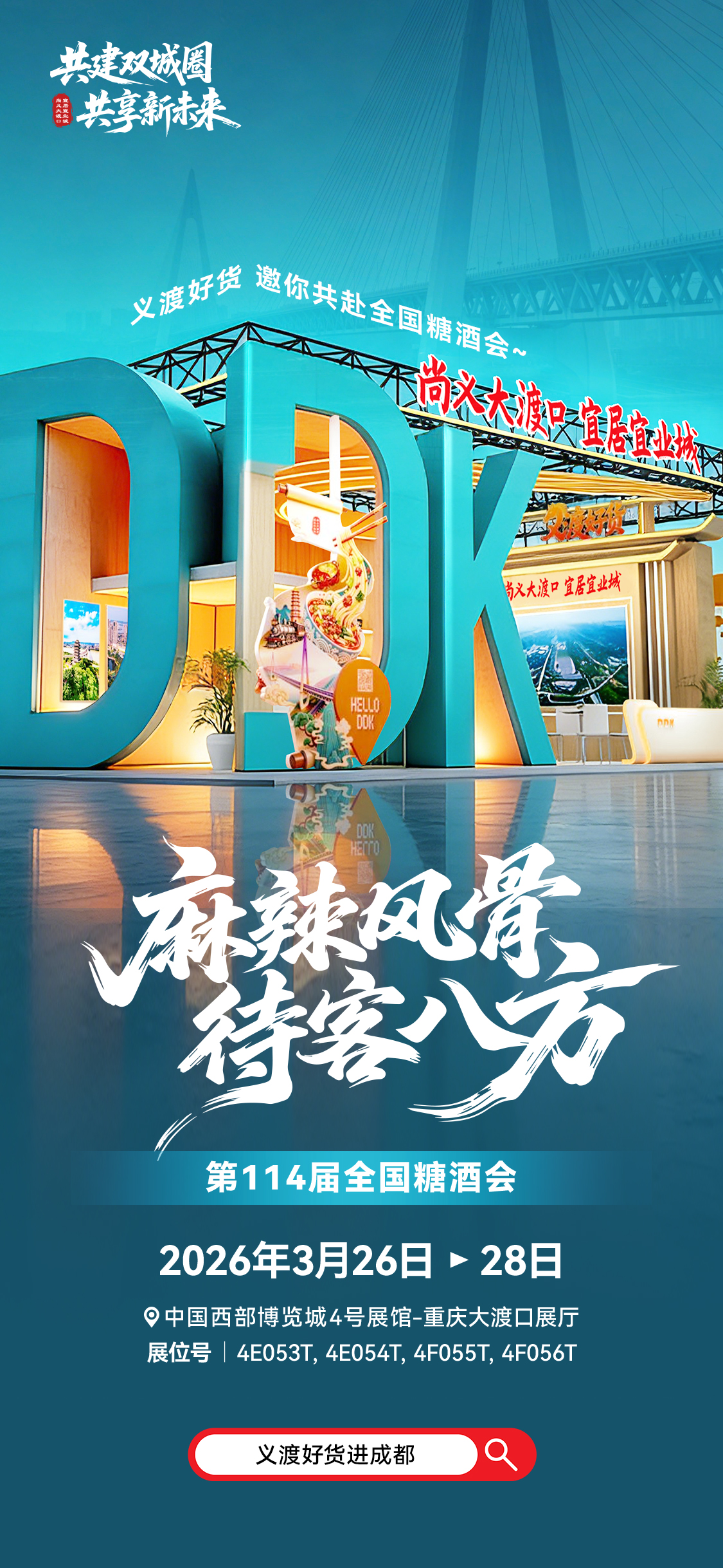 3月26日至28日,第114届全国糖酒商品交易会将在成都举行。大渡口区将组织区内10余家特色食品及农产品加工企业,以“义渡好货·香满全国”为主题,携重庆小面、火锅底料、特色调味品等百余款核心产品组团参展。