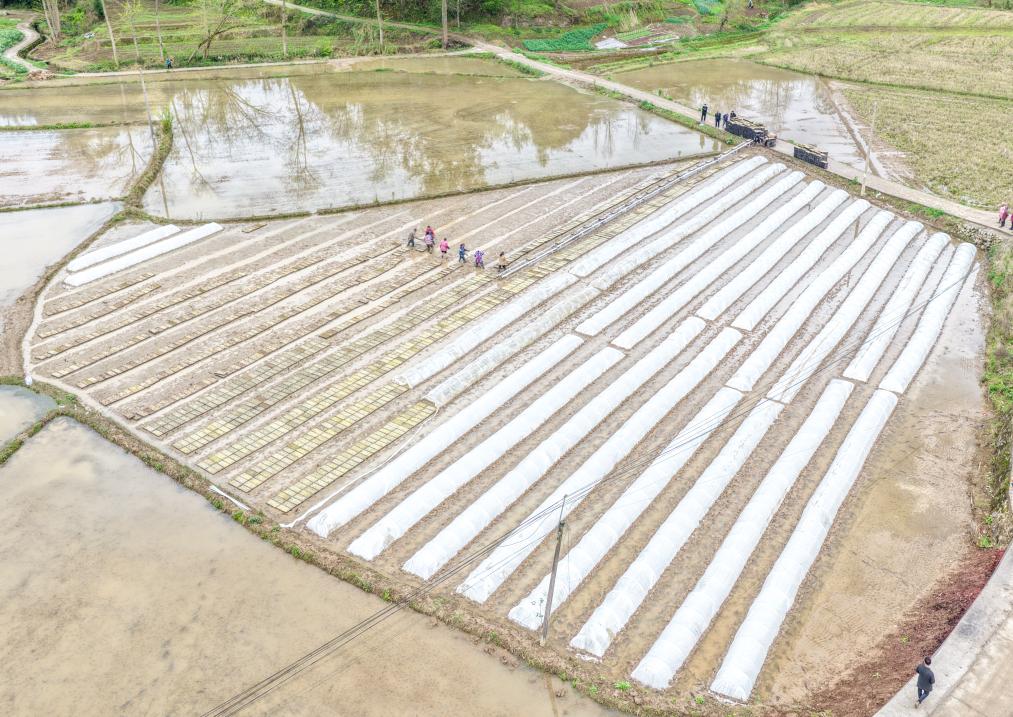 随着气温逐渐升高,在素有“渝东粮仓”之称的重庆市梁平区,农民抢抓农时进行水稻育秧等工作,田间地头一派繁忙景象。