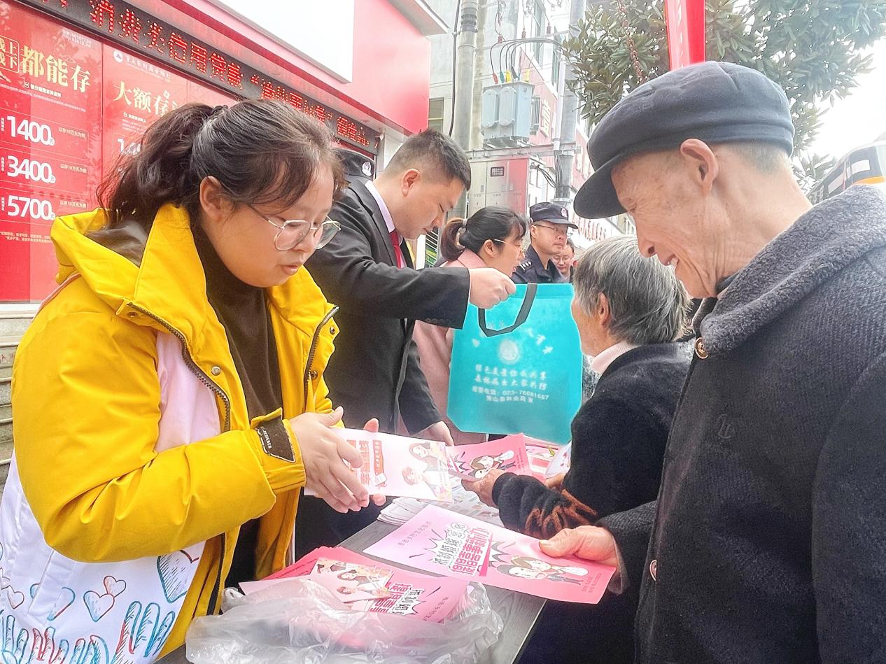 社工发放婚姻家庭法治宣传资料。重庆市秀山县人民法院 供图