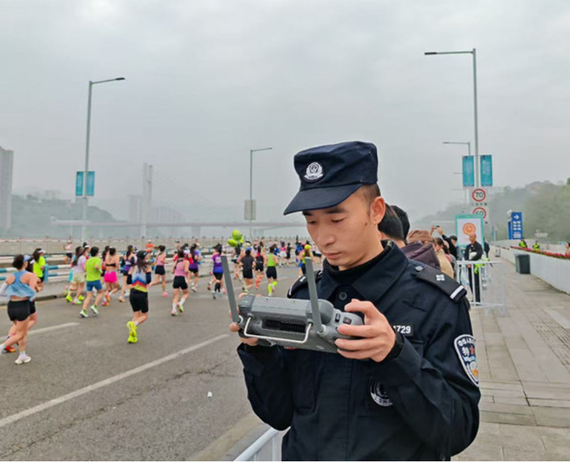 科技为安保工作注入智慧动能,两江公安构建起“空地一体”立体化防控体系。凌晨1时,首批执勤警力奔赴各点位开展道路清障、设施搭建等工作;清晨6时,所有警力悉数到岗,定点布岗、沿线巡控,成为赛道旁最安心的“藏蓝路标”。
