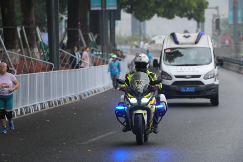 警车与救护车同向护航,守护全体跑者的平安征程。李林健 摄