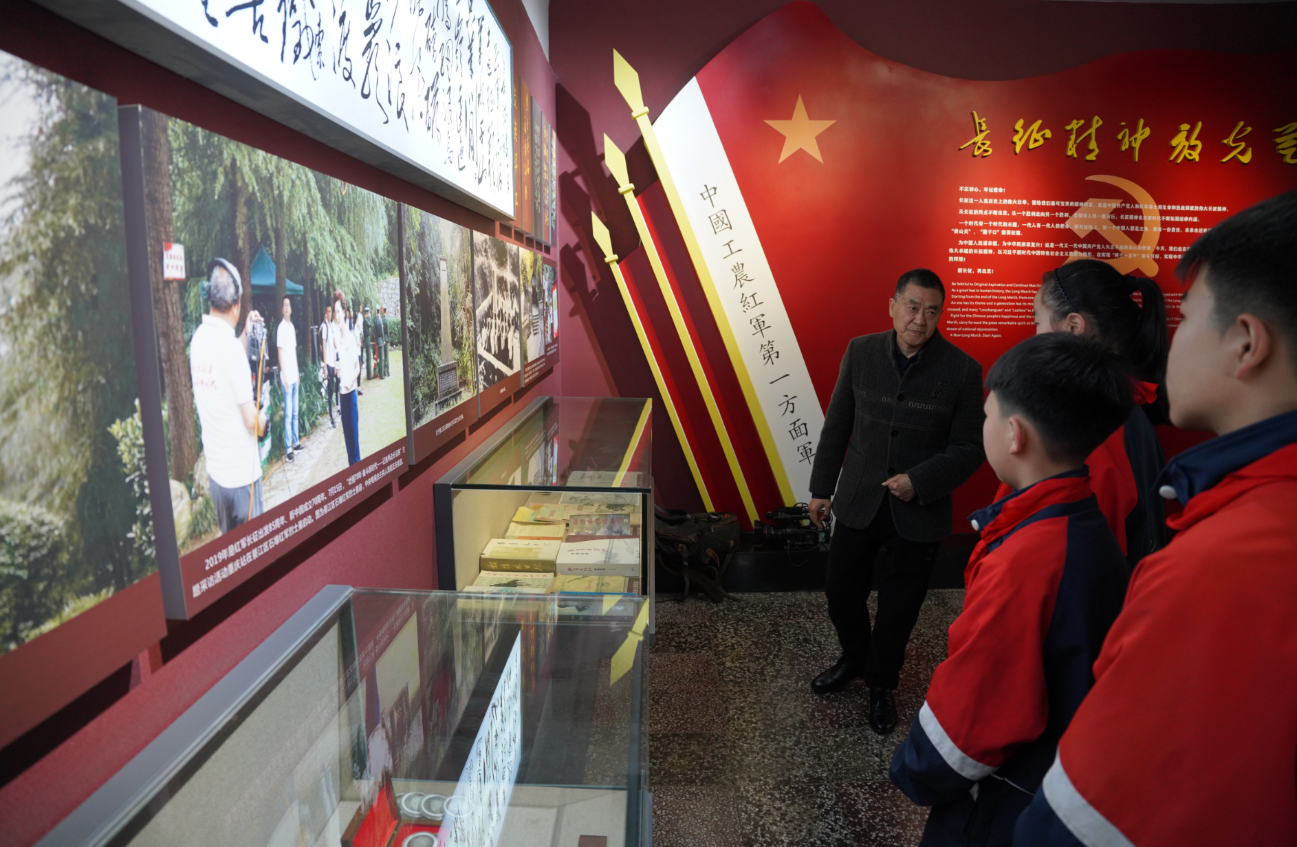 赵福乾为学生们讲解长征故事。(刘磊 摄)