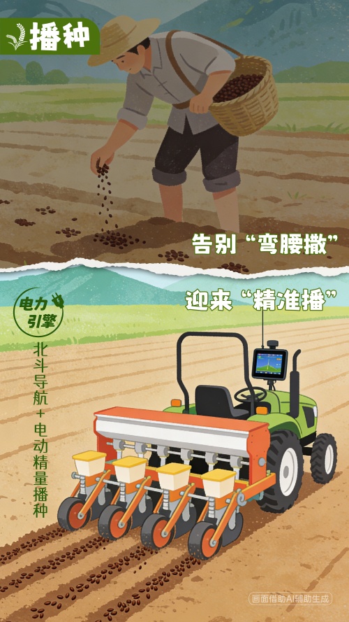 春回大地,春耕正忙。曾经肩挑背扛、面朝黄土,如今指尖操控、机器轰鸣。跟随画面,看电力如何让春耕更高效、更轻松、更智能!