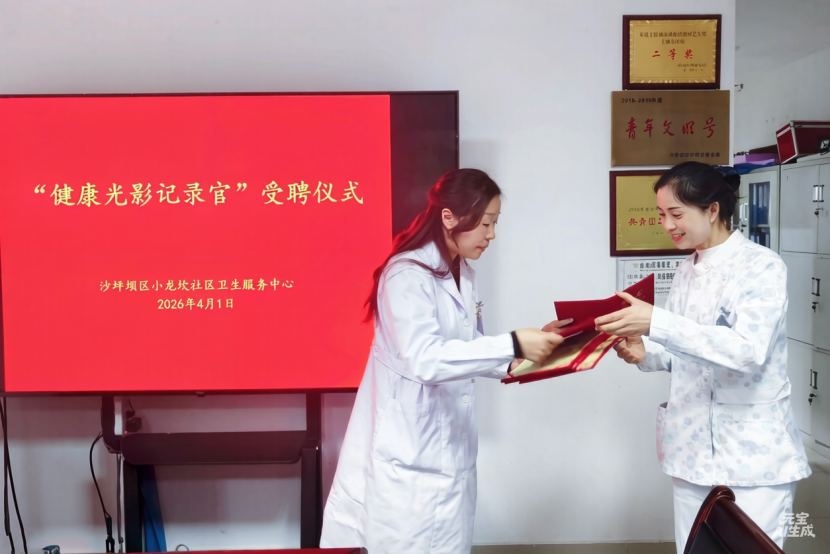 为创新健康宣传形式,丰富宣传素材来源,全面提升健康教育与品牌传播工作质量,4月1日,沙坪坝区小龙坎社区卫生服务中心举办了“健康光影记录官”聘任仪式。
