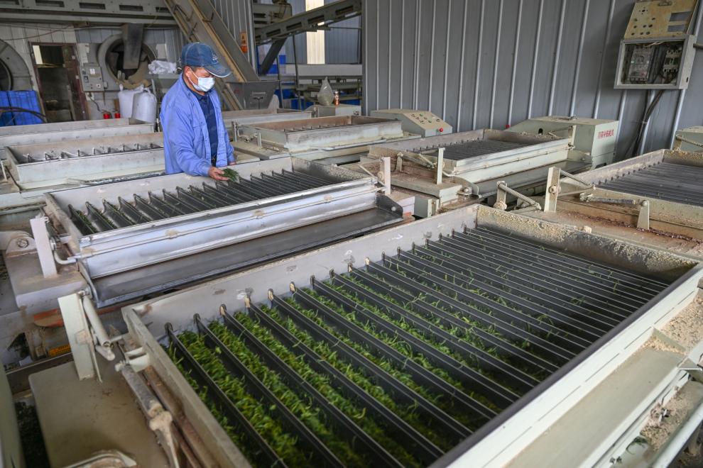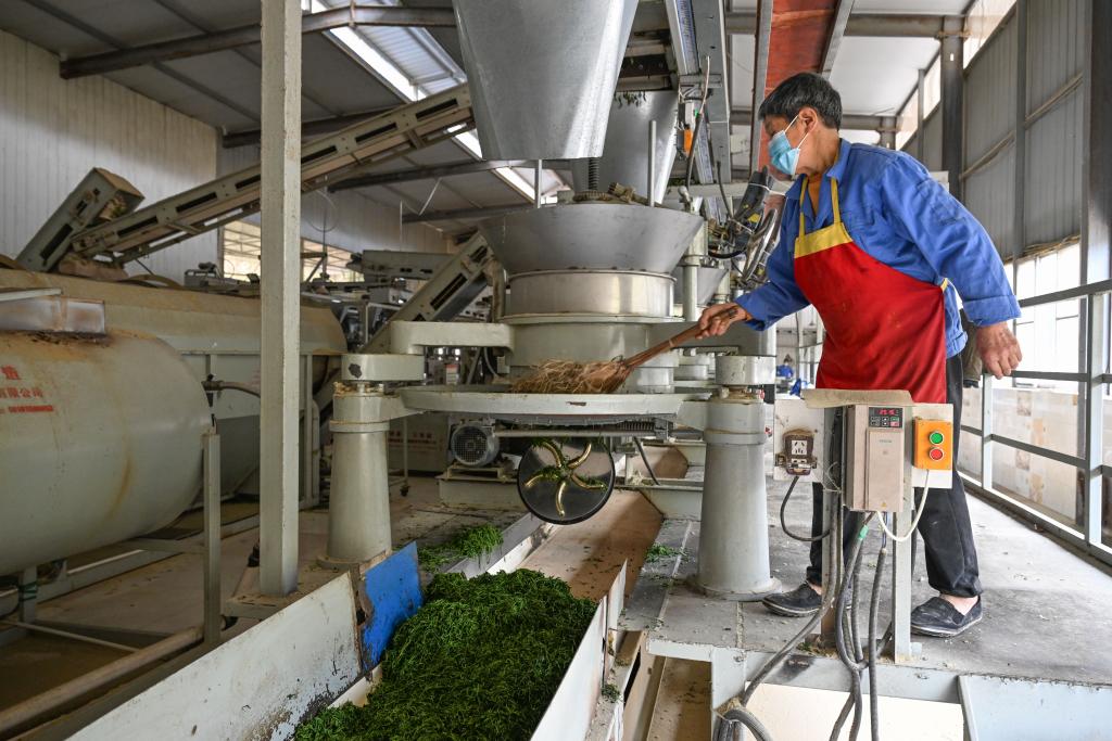4月3日,重庆市永川区宝峰镇一家茶厂的工人在加工茶叶。新华社记者 陈诚 摄