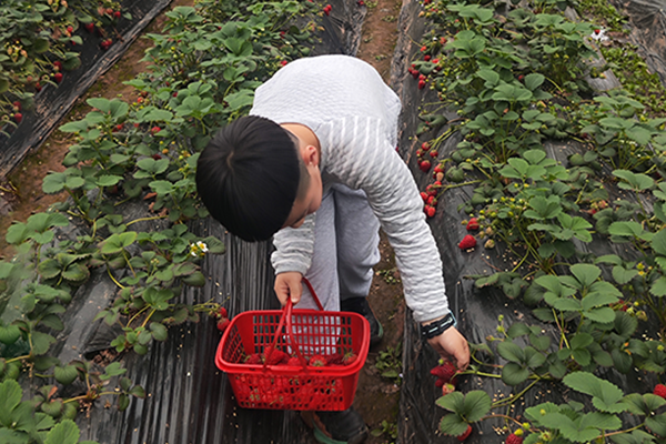 潼南区实验小学学生走进草莓采摘园,体验劳动乐趣。