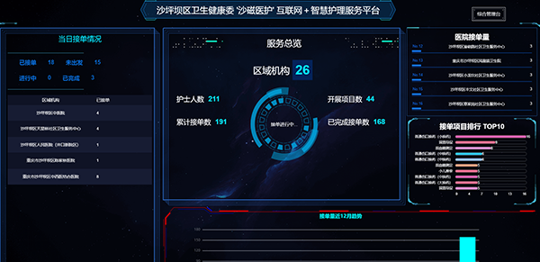 沙坪坝区卫生健康委“沙磁医护”互联网+智慧护理服务平台。