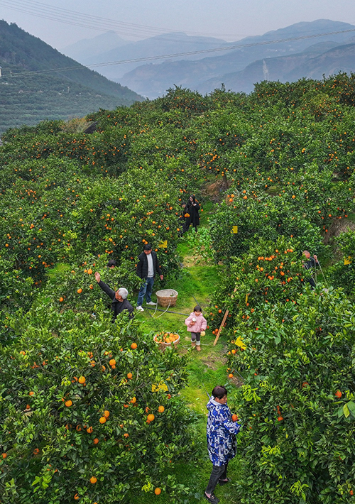 奉节县永乐镇大坝村,村民正在采摘脐橙。(资料图片)首席记者 龙帆 摄