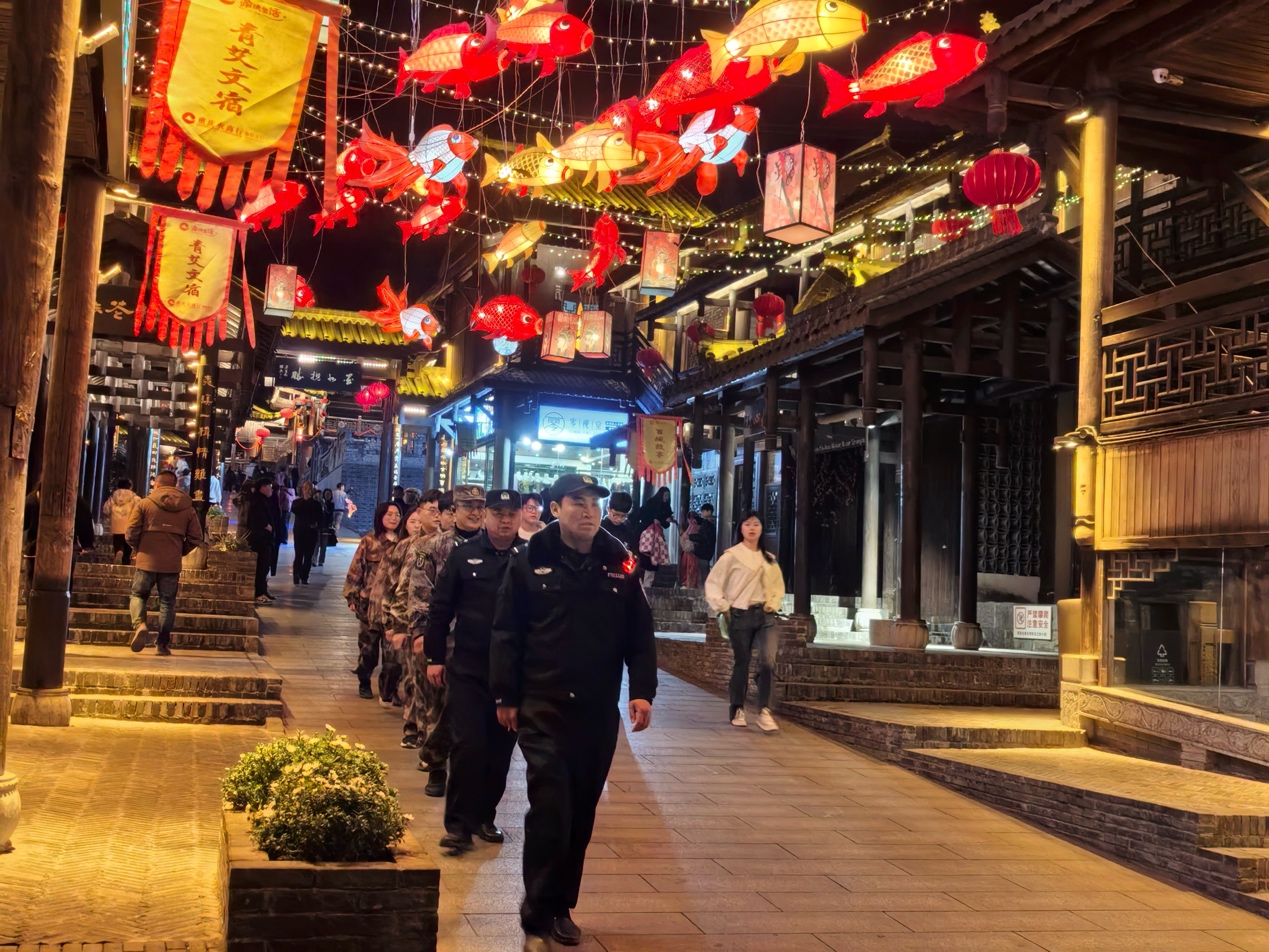 巡逻队伍在酉阳古城开展街面巡逻。酉阳县公安局 供图
