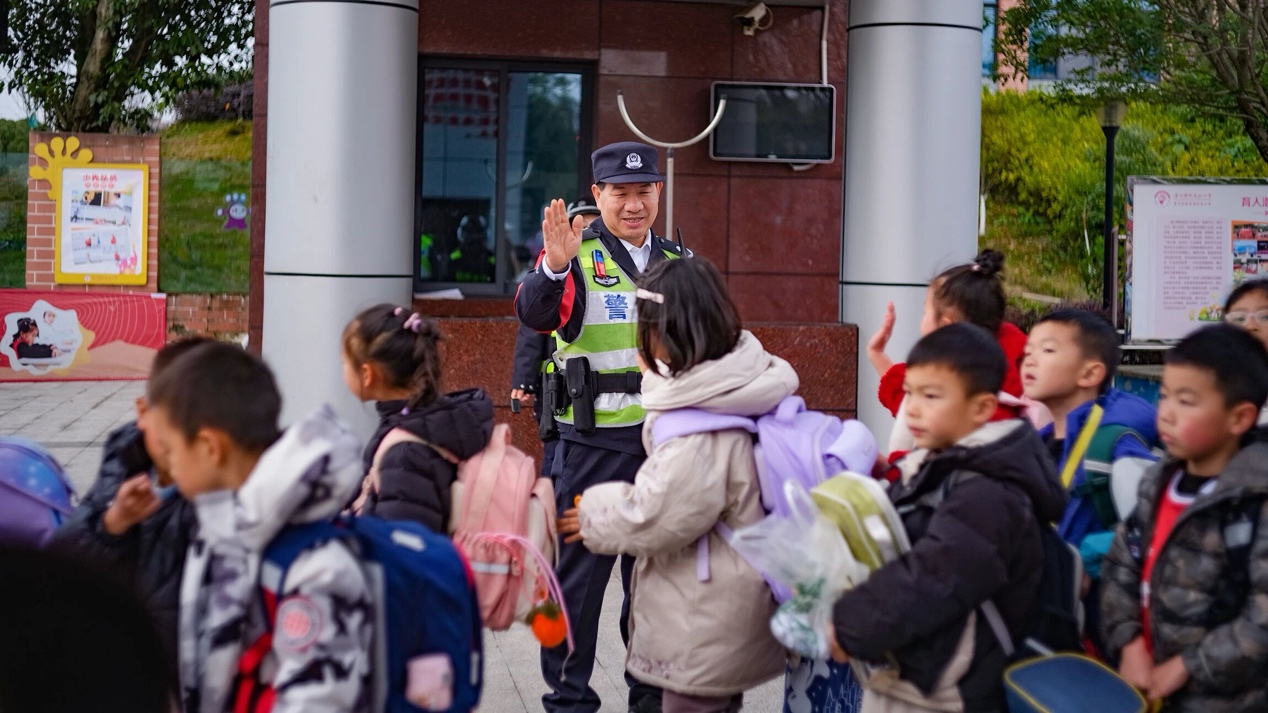 刘良君在南山珊瑚小学开展护校工作。重庆市公安局南岸区分局 供图