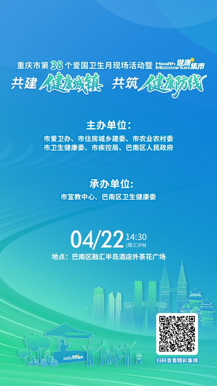 今年爱国卫生月的主题是“共建健康城镇 共筑健康防线”,重庆将通过健康集市“健康城镇创建专场”,为群众带来一场与健康的双向奔赴。