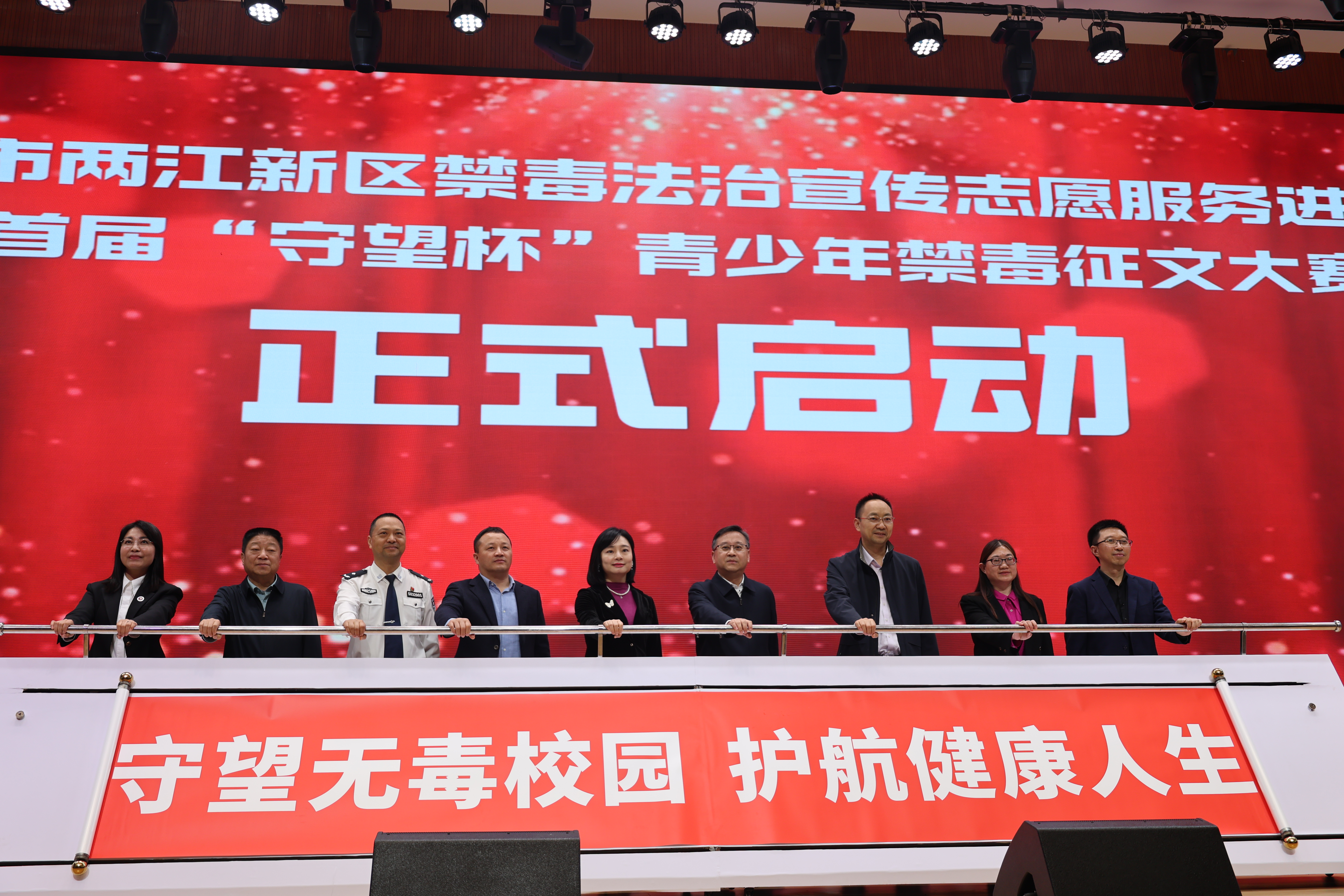 4月22日,重庆市两江新区禁毒法治宣传志愿服务进校园暨首届“守望杯”青少年禁毒征文大赛启动仪式在重庆八中龙塔实验学校初中校区举行。活动由重庆市教育矫治局(重庆市戒毒管理局)指导,重庆市江北教育矫治所(重庆市江北强制隔离戒毒所,以下简称“江北所”)联合两江新区司法局、区委社工部、区教育委员会主办,民进重庆市委会教育委员会、守望者禁毒志愿服务队协办,以“守望无毒校园 护航健康人生”为主题,旨在常态化开展禁毒法治宣传进校园活动,切实增强青少年识毒、防毒、拒毒意识与能力,全力营造健康、安全、和谐的校园环境。