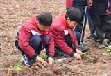 "闪“药”先锋志愿服务队学生在培苗基地挖移艾草种苗。"